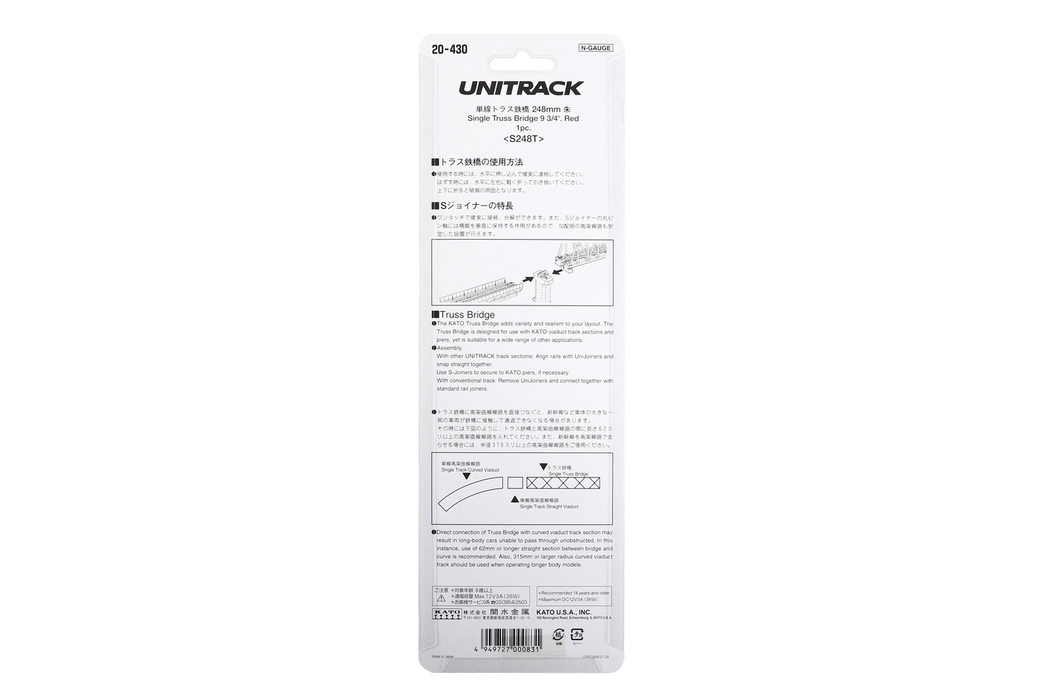 The UniJoiner is the basis for Kato’s UNITRACK worry-free design. As a Removable connector slip, the UnJoiner can be replaced in the event that a piece breaks (unlike other snap tracks there the entire section of track will have to be replaced), and can be easily swapped out for wired UniJoiners or insulated UniJoiners for more advanced layout wiring techiques.