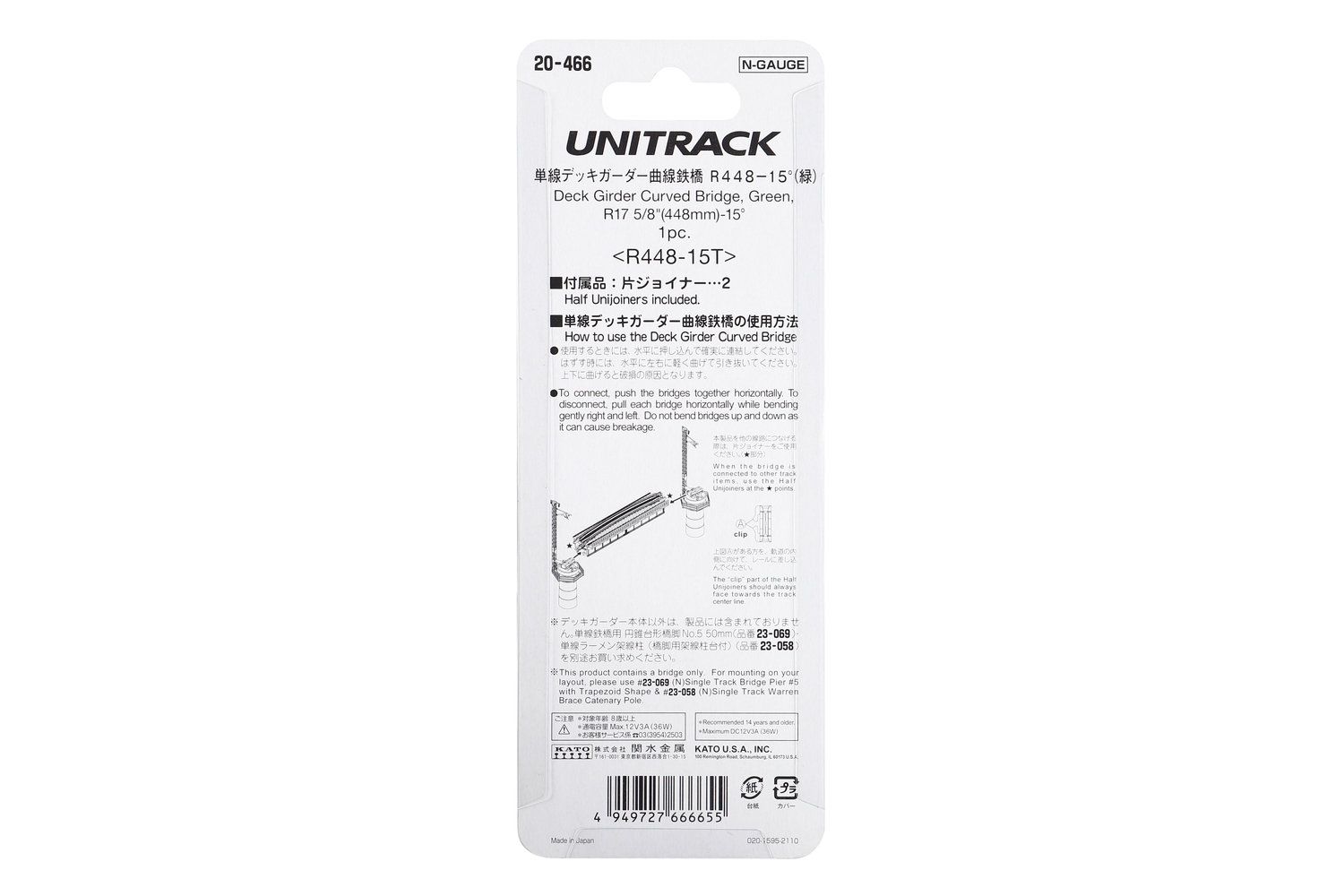 The UniJoiner is the basis for Kato’s UNITRACK worry-free design. As a Removable connector slip, the UnJoiner can be replaced in the event that a piece breaks (unlike other snap tracks there the entire section of track will have to be replaced), and can be easily swapped out for wired UniJoiners or insulated UniJoiners for more advanced layout wiring techiques.