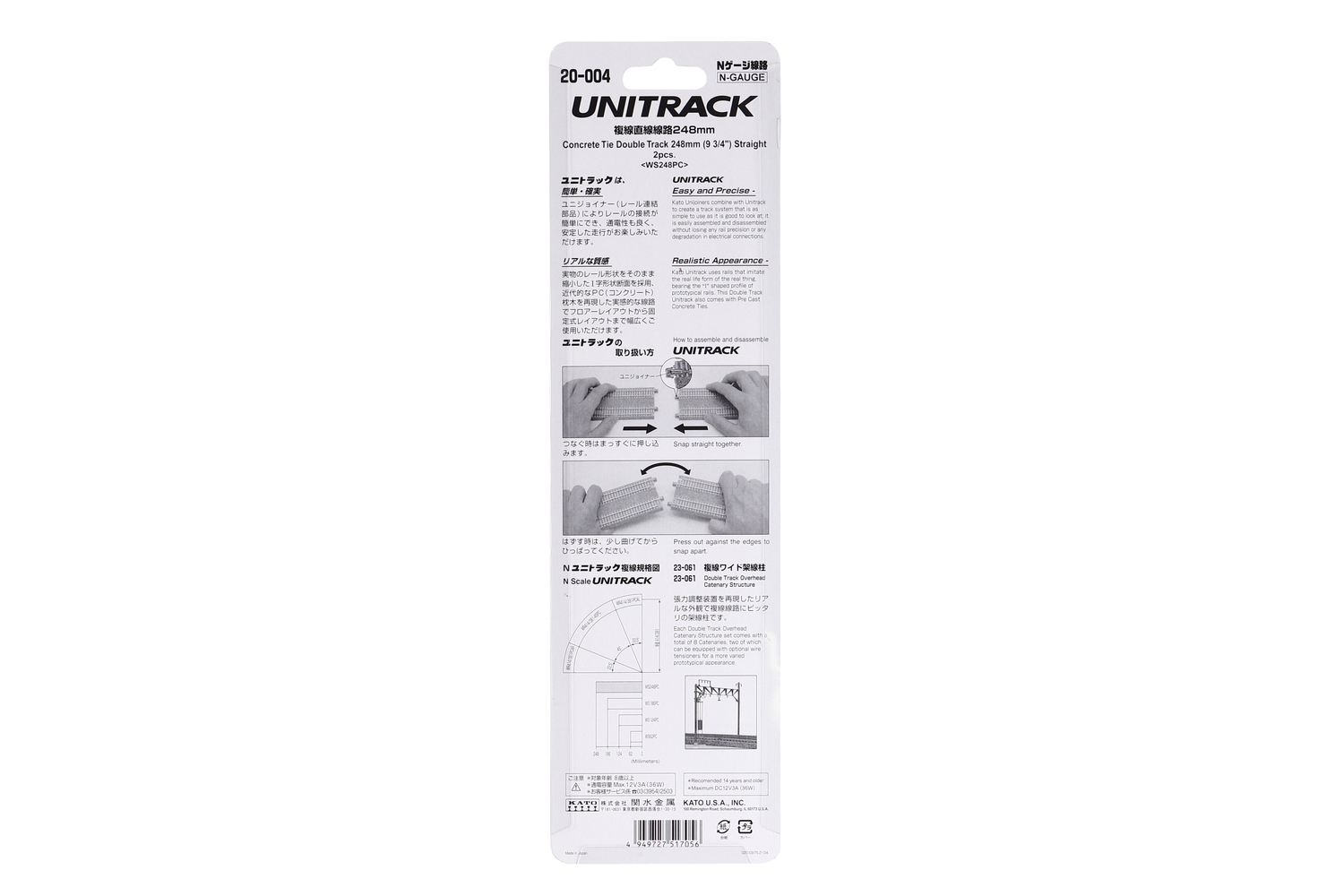 The UniJoiner is the basis for Kato’s UNITRACK worry-free design. As a Removable connector slip, the UnJoiner can be replaced in the event that a piece breaks (unlike other snap tracks there the entire section of track will have to be replaced), and can be easily swapped out for wired UniJoiners or insulated UniJoiners for more advanced layout wiring techiques.