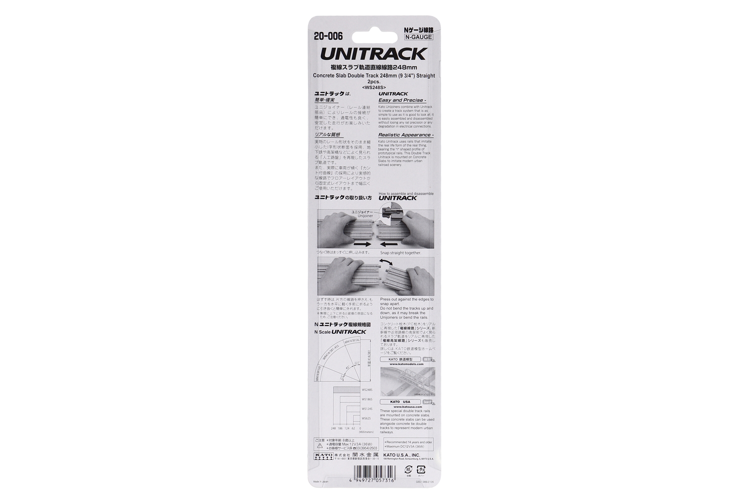 The UniJoiner is the basis for Kato’s UNITRACK worry-free design. As a Removable connector slip, the UnJoiner can be replaced in the event that a piece breaks (unlike other snap tracks there the entire section of track will have to be replaced), and can be easily swapped out for wired UniJoiners or insulated UniJoiners for more advanced layout wiring techiques.