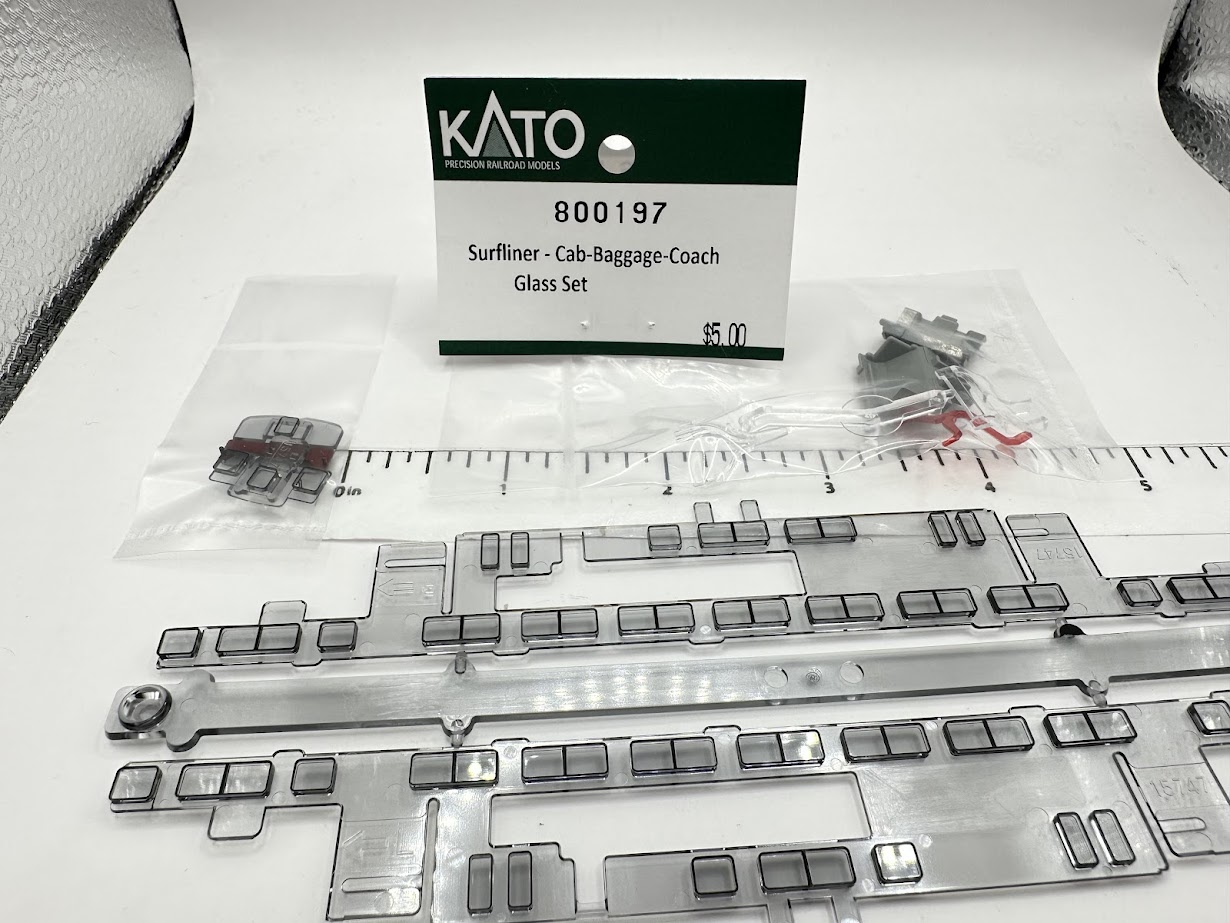 Surfliner Cab Coach Glass Set includes glass piping for headlights and taillights